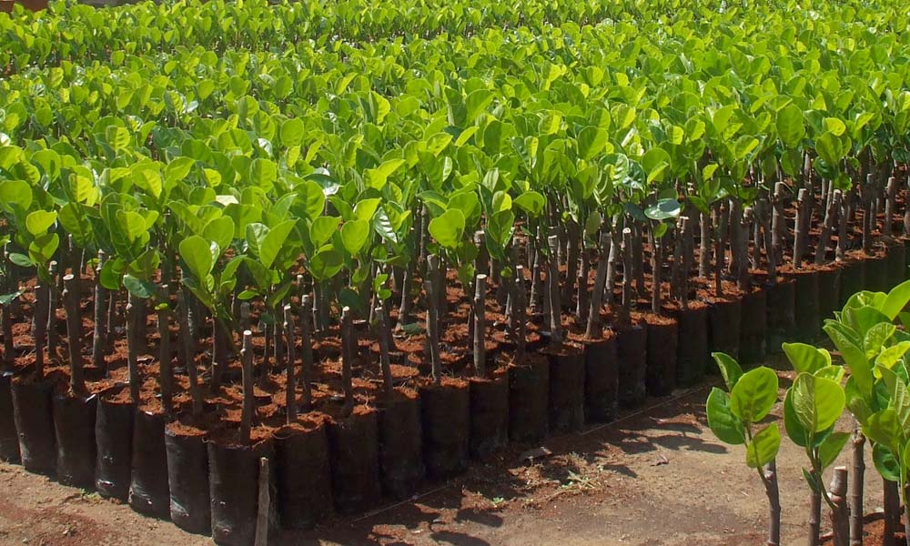 Trồng: Ðặt cây vào giữa hố, đất lấp cao hơn mặt bầu của cây 5cm, cột cố định cây. Tránh làm vỡ bầu đất khi tháo bỏ túi nilon; bỏ những chồi mọc dưới vết ghép và chồi nách. Trồng dậm cho những cây cây chết sau trồng 7 ngày.